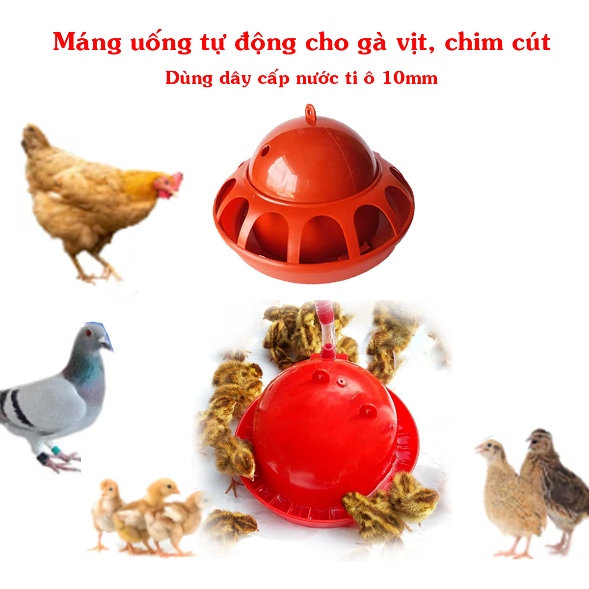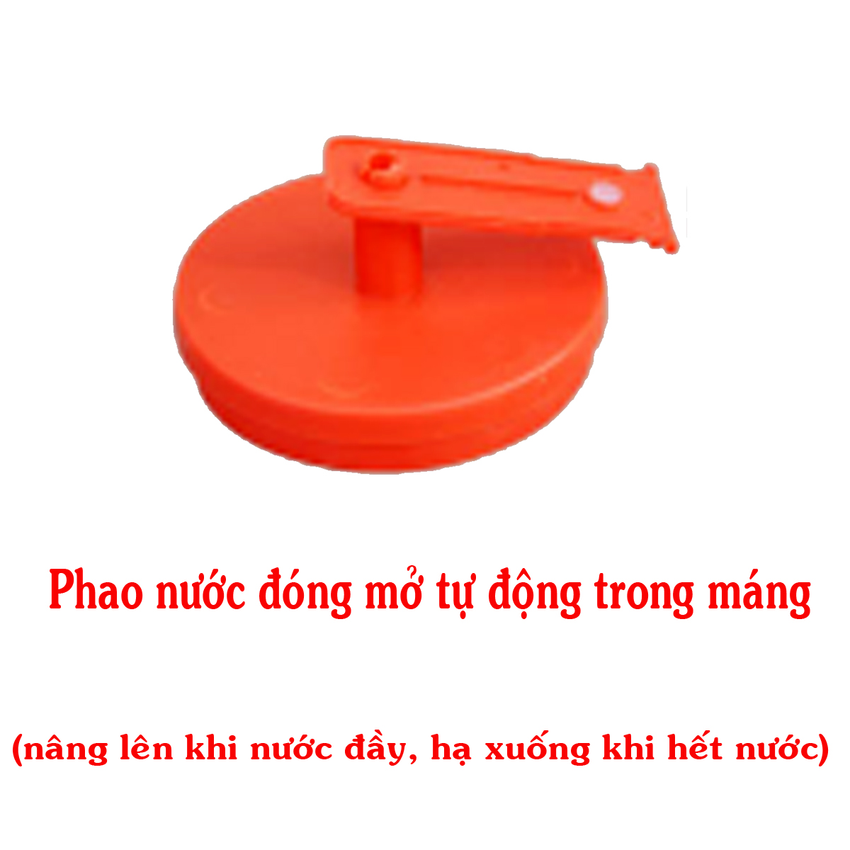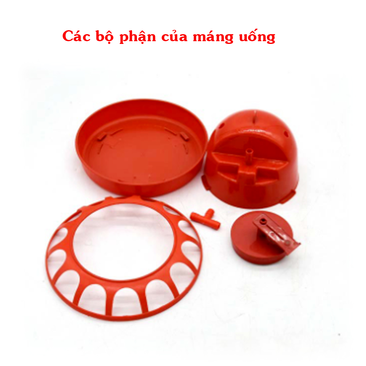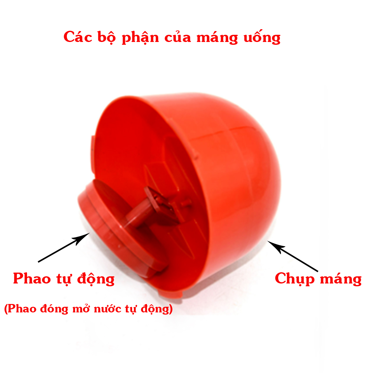 Máng nước được thiết kế gắn vào ống nước. Khi đầu cấp có sẵn nước, nước sẽ chảy trực tiếp vào máng, đến khi gần đầy máng thì tự máng ép đệm cao su đóng lại lên không bị tràn ra nền. Khi gà vịt chim uống cạn hoặc vơi máng thì trọng lượng máng nhẹ hơn sẽ bênh lên và nước sẽ chảy vào máng đến một mực nhất định sẽ đóng lại. Như vậy trong máng luôn có sẵn nước cho gia cầm uống mà không cần tác động vật lý của con người hay gia cầm vào máng để làm cho nước chảy. Phù hợp với hầu hết gia cầm gà ngan vịt chim lúc nhỏ. Sản phẩm rất tiện dễ lắp đặt và hiệu quả.