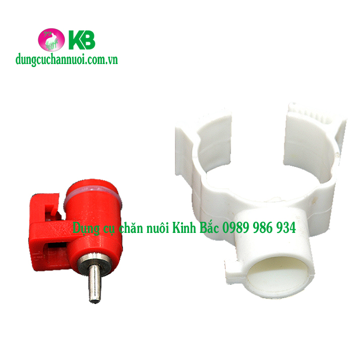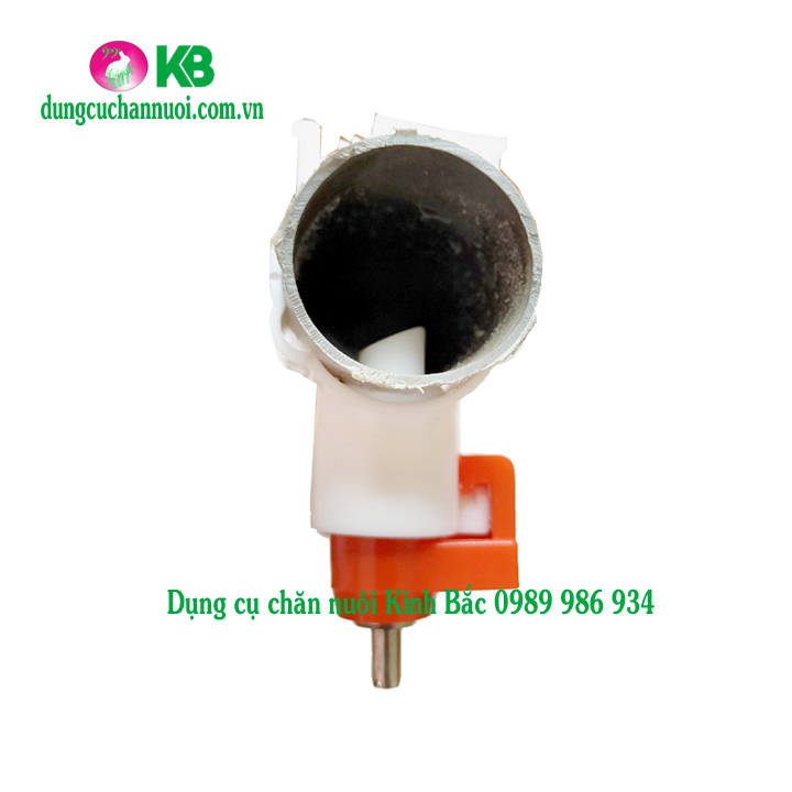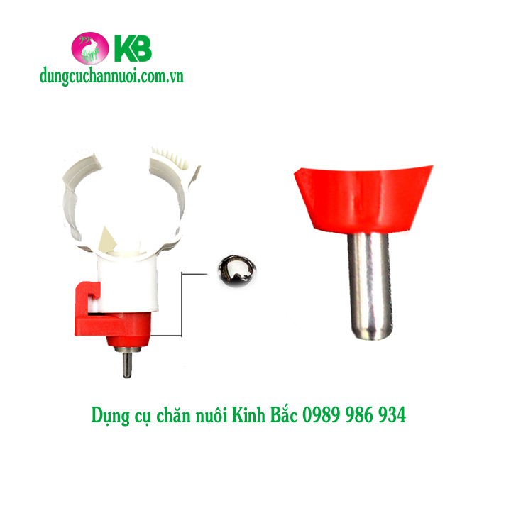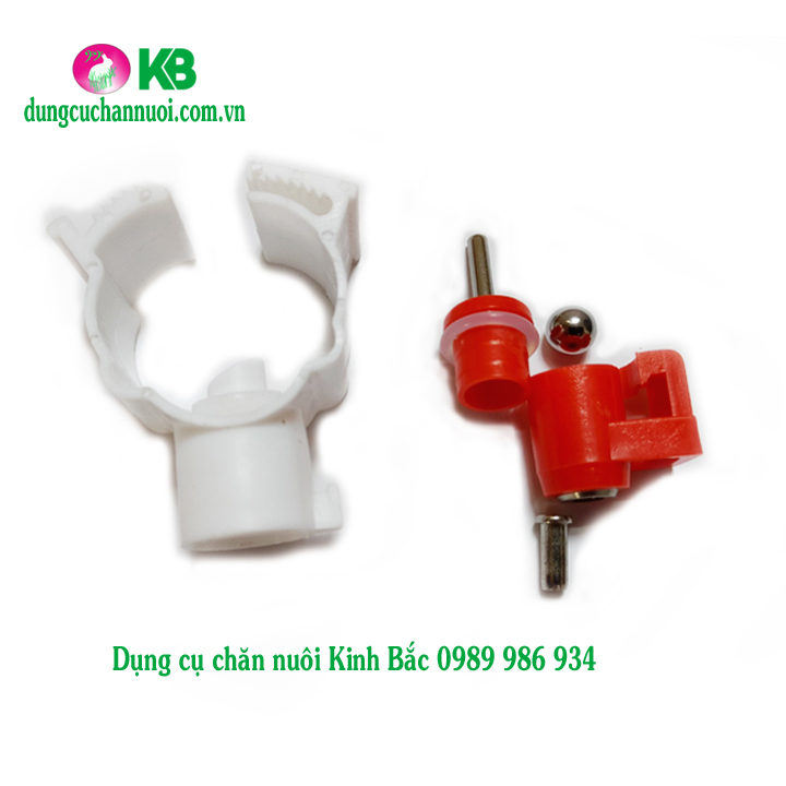 + Bộ phận thứ 2 là phần van (núm) uống . Bao gồm thân van được làm bằng nhựa nguyên sinh dày, chắc chắn. Bên trong van nước uống tự động cho gà gồm có chốt trên và chốt dưới bằng inox, nằm giữa hai chốt là viên bi inox có nhiệm vụ ngăn nước hoặc mở nước theo chuyển động của chốt dưới. (Khi vịt uống nước chúng sẽ mổ vào đầu van, đầu van lúc này chuyền lên bi và bi xoay sẽ mở nước xuống cho gà uống, khi gà không mổ đầu van, bi đóng lại và ngăn nước chảy xuống).